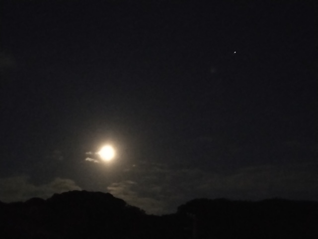 夜もふけて中天に昇りゆくお月様の影を