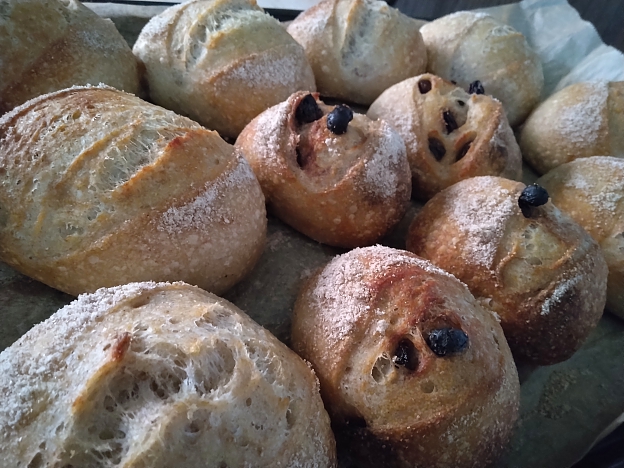 自分たちで食べる分のぶどうとシナモンのパンを