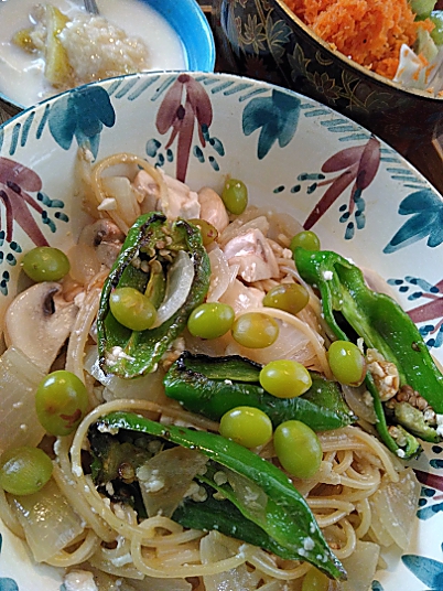 季節の和風ぎんなんパスタ作りました*