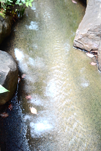 たのしそうにおみくじを湧き水に浮かべておりました。