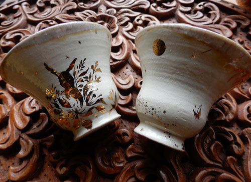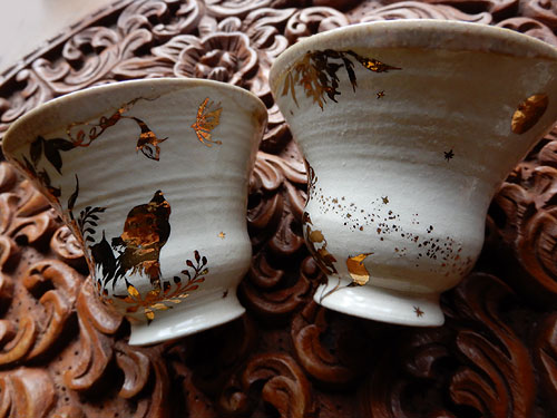 カップ内側にペルシャの技法であるラスター硝子を施しています。