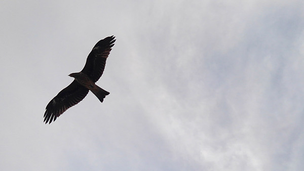 石碑の上にトンビがとまっていたので鳥の調子で話しかけてみました。