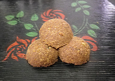 おからと薄力粉ベースに、刻んだスギナを入れました。