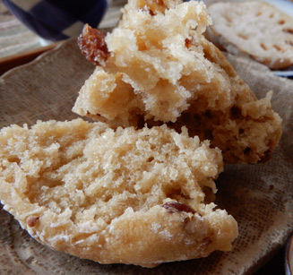 手でちぎると天然酵母パン特有のねばりのあるちぎれかたをして、