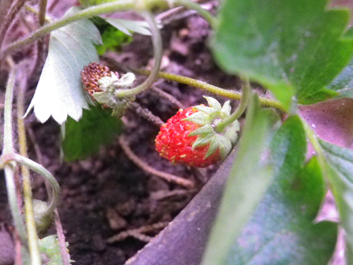 種が飛んでいつの間にか生えてきた野いちごも実が成り始めていました。