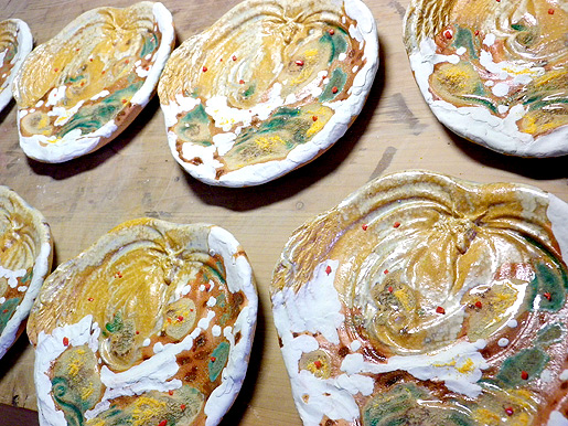 写真は釉がけ後の様子。