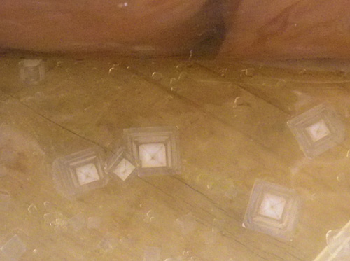 庭の梅で梅干しを漬けたらこぼれた梅酢に塩の結晶ができて