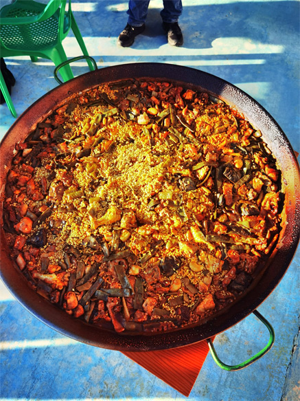 お日さまのような大きなパエージャの写真(下)と、