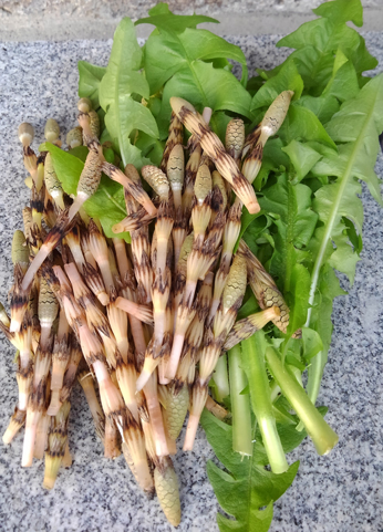 夕ご飯に柔らかなたんぼぼの若葉とつくしのてんぷらをいただきました。