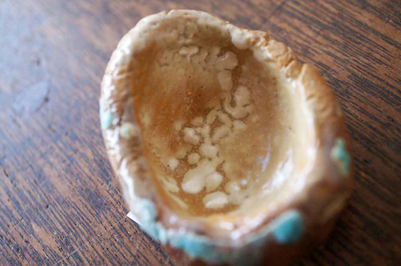 純金彩を施す前に私の土の工房のテーブルに置いておいた