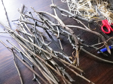 土の弦楽器のパーツを作るのに必要な梅と金木犀の枝の選別を。