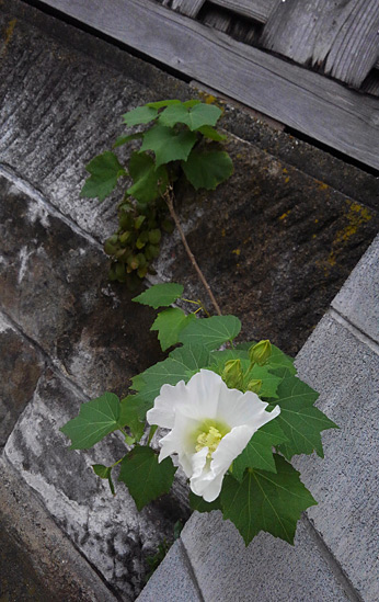 にょろっと龍のように塀から伸びて