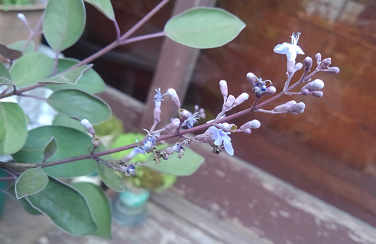 葉裏も花もスモーキーな紫色の