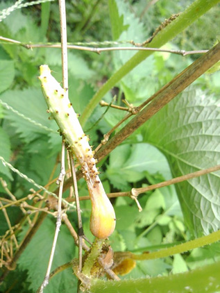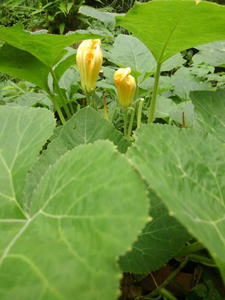 夏に食べたスイカの種をぷっぷっとすてたものから芽が吹き。。