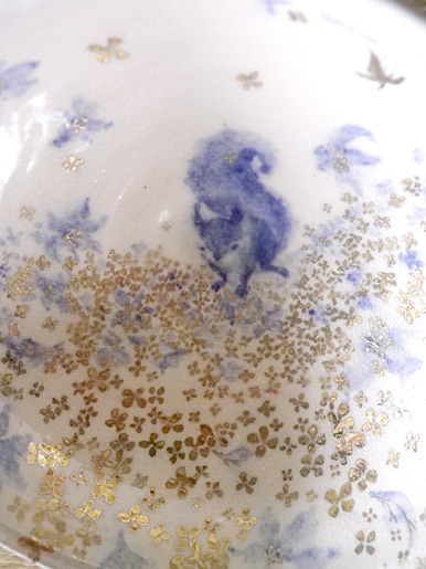 外側の釉はマット白色で、植物の灰が合わせられています。
