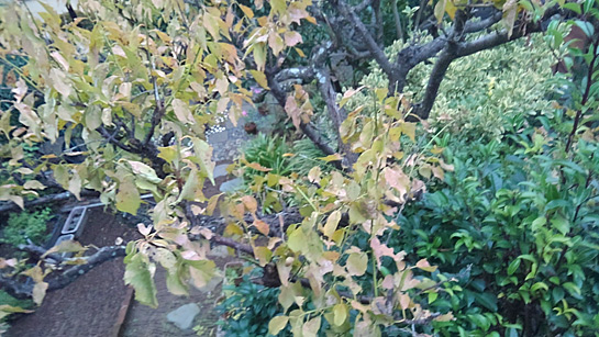 上の写真の手前の梅の木からは葉が枯れてどんどん落ち始めています。