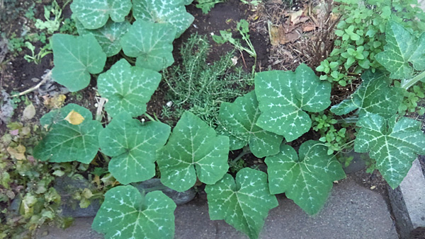 コンクリの手前でUターンした賢いつくるびかぼちゃ。