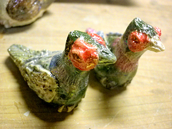 この指人形では原種といわれるセキショクヤケイをモデルに作りました。
