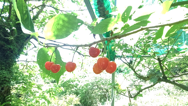 サクランボをほおばりながら