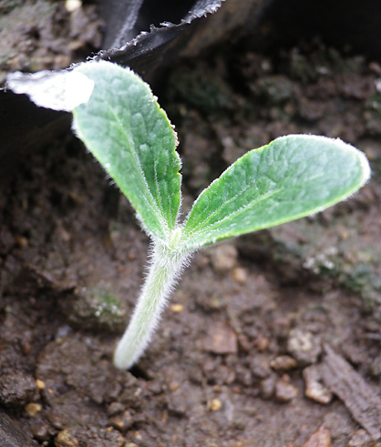 生まれたてで恵那のような薄皮をちいさな双葉につけたまま