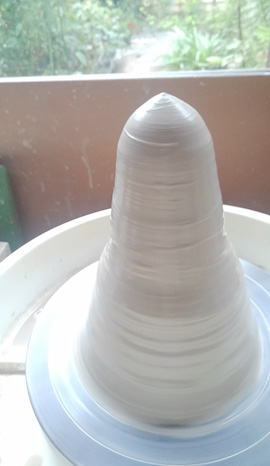 練りあげた土をろくろに乗せたとき