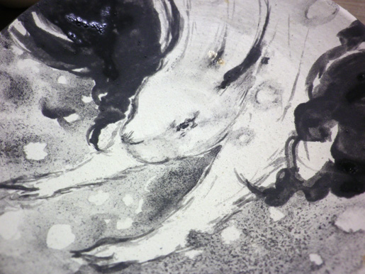 繊細な描写の部分に釉を厚く重ねると