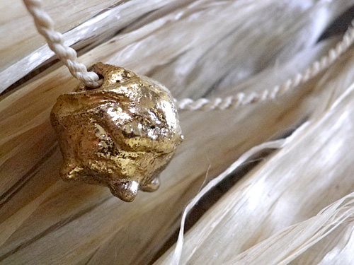 ちょこんと掌(てのひら)の中におさまる純金彩の兎のペンダントです。