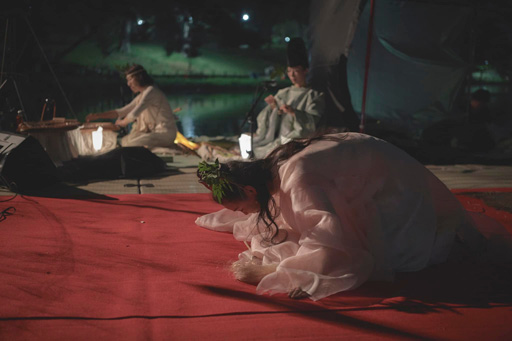 巫女舞の方が、この夏に大宮の氷川神社主催の元境内池上での