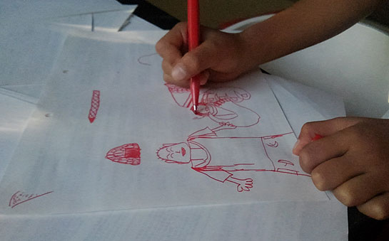 ゆにくんがお手製の帳面づくりの工程を見せてくれたり、