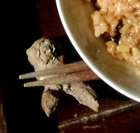 あけびの皮に肉詰めしてあげ焼きにしていただいていたそうです。