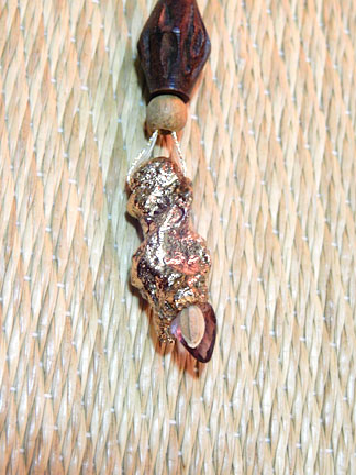 紐は金属チェーンではなく精麻と金糸を重ねたもので
