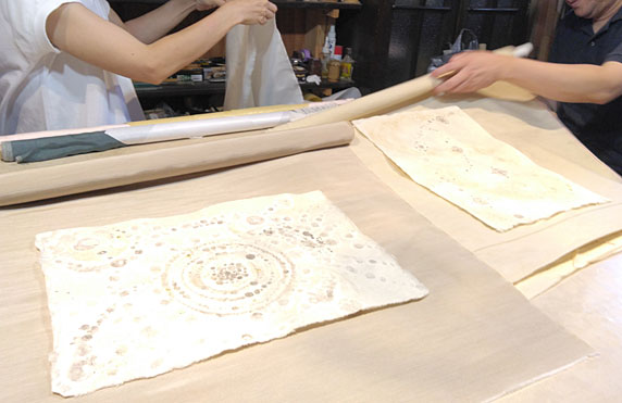 表具と蒔絵の金兵衛さんにて掛け軸の打ち合わせ。