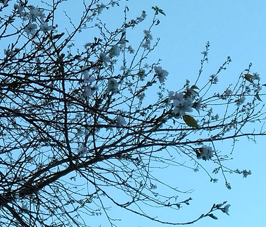 お参りを済ませて参道を歩くと、桜の花が咲いていました。