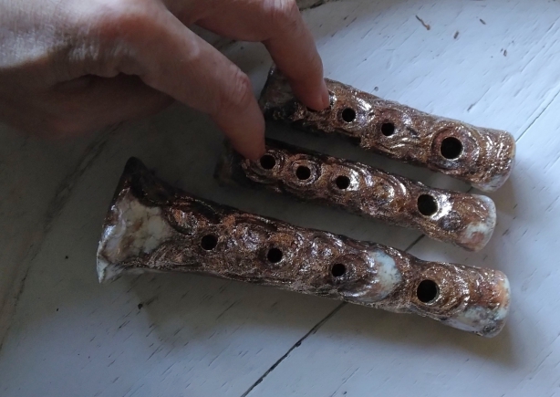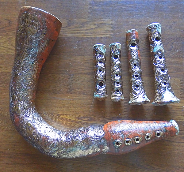 土の弦楽器と4つの笛。