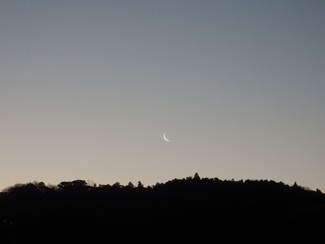 月の後から日が昇る 明け方。随分と明るい星が昇ってくるなあと思って王様の古墳の山際を見ていたらそれは月でした。 月の後を追うようにして山の向こうは日が昇ったようでだんだんとこちらの空も明るくなってきました。